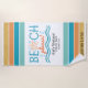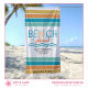 Celebrate summer vacations or a girl’s weekend getaway at the beach with this fun beach towel that features colorful typography that says, “Beach Please,” a simple illustration of a seashell and ocean waves, bold tropical colored stripes, and four customizable text placeholders. Add a name and modify the event, location, and date to create a unique keepsake that your guests will remember every time they reach for this towel.