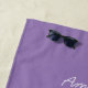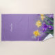 This vibrant beach towel features a striking photo of beautiful purple and yellow iris and freesia spring flowers set against a soft, rich lavender background. The lush floral border provides a beautiful contrast to the ample space available for personalization. Customize the elegant script text with a recipient's name, a favorite beach quote, or special initials to create a unique and luxurious gift for bridesmaids, mothers, or anyone who loves gardening and bright colors.