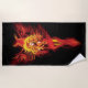 Mujer que es una llama con alas. Una mujer fénix con llama roja, naranja y amarilla es el fondo de negro.