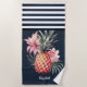 Toalla De Playa Pineapple Hibiscus Nautical Naval con rayas azules