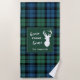 Talla de playa de casa dulce para personalizar fácil haciendo clic en el botón "Personalize", con silueta de ciervo y tartán Campbell de clan en verde y cheque azul. Hace un gran regalo para el hogar