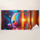 Esta toalla de playa tiene una puesta de sol artística con algunos planetas sobre ella.