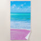 Esta bonita toalla de playa cuenta con una magnífica foto de una playa tropical de arena rosa.