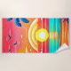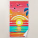 Una obra de arte de una playa tropical al atardecer, con palmeras envueltas en un cielo colorido con un arco iris (Este diseño hecho con IA). ¡Haga el pedido hoy y acepte la alegría de ir de compras!