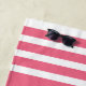 La toalla de playa personalizada Coral Pink and White Stripe para tus Chicas Weekend Friends Trip, Beach Vacation, o Cruise con texto editable y la redacción para tu fecha, destino o ubicación, nombre y cita divertida como "playas, alcohol y bestias" es la mejor manera de conservar tu equipo de viajes o damas de honor.