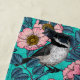 Patrón vectorial dibujado a mano con aves de corral con tapa negra en un arbusto de rosa silvestre