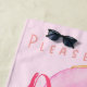 Esta bonita y divertida toalla de playa está preparada para que puedas personalizarla con tu nombre. El diseño incluye un anillo helado con la frase "Por favor, no toques" como un juego de palabras divertido, que también puede servir como un pedido amistoso para no estropear tus cosas. Debajo de eso, dice "Esta toalla pertenece a [añade tu nombre]" con más donuts de anillo helados. La paleta de colores es rosa y melocotón. Busque en nuestra tienda colores alternativos, coincidencias y coordinación de elementos.