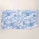 Toalla de playa con temática oceánica, azul monocromo, diseño acuarela pintado. Pulpo