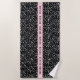 Toalla De Playa Punto blanco y negro con banda rosa personalizada
