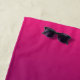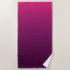 La toalla de playa es de color oscuro, con un diseño elegante morado y rosa.