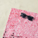 Purpurina rosa con chispas blancas sobre fondo negro. Un nombre está escrito en un fondo negro. Puede cambiarlo a cualquier texto que desee