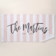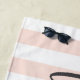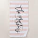 Esta toalla de playa tiene un sutil fondo de rayas rosa pastel con el nombre de la familia y el año establecido. Un regalo para una pareja recién casada por su regalo boda. También puede hacer un gran regalo de aniversario.