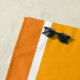 Este divertido y audaz diseño presenta una amplia franja de carreras dorada amarilla con tiras cálidas de naranja y blanco.