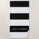 Toalla De Playa Rayas modernas nombre monograma negro y blanco