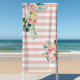 Toalla de Playa Rayas Náuticas Afloradas en Acuarela Nombre Rosa. Personalice este diseño personalizado con su propio nombre.