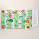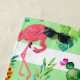 Patrón tropical con flamencos rosados, flores y hojas tropicales, piña y más. Ilustracion acuático moderno con fondo verde menta y blanco.