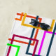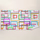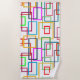 Esta toalla de playa tiene un diseño Bauhaus de rectángulos superpuestos de varios colores.