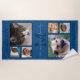 Esta toalla de playa personalizada personalizado de 6 fotos en Classic Blue es imprescindible para el mejor verano de la historia. Desde la zona costera hasta la piscina, esta toalla de playa monograma presenta un rico fondo azul clásico, bordes de texto y fotos en un tono azul oscuro y una habitación para un nombre familiar o un nombre personal en el centro en un tono azul claro. Sube tus fotos favoritas, perfectas para tus mejores fotos de Instagram, y personalizar el texto en la parte superior e inferior del color azul profundo. Desde su ciudad de playa favorita hasta el año o un mensaje corto, todo el texto también puede ser eliminado como prefiera, por lo que puede crear su propia toalla de playa exclusiva Pantone 2020 Classic Blue para usted o como un regalo de clase. Esta única manta de playa clásica azul es perfecta para las vacaciones de temporada.