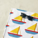 This fun personalized beach towel features brightly colored toy sailboats in shades of red, blue and yellow on white. Personalize the stripe on the bottom with your choice of name or special text.