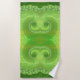 Esta toalla de playa presenta un patrón fractal de espiral simétrico en tonos verdes.