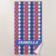 Retro Resumen Rayas Azul Rosa Nombre Personalizado Toalla de Playa
