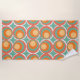 Esta toalla de playa tiene un diseño moderno de mediados de siglo de círculos concéntricos de colores de los años 70 con estrellas entre cada grupo.