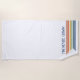 Make a statement at the beach or pool with this Retro Monogrammed Minimalist Stripes Beach Towel. Featuring bold blue, turquoise, green, orange, and terracotta stripes, it blends vintage charm with modern, eye catching design. Personalize it with your name or initials for a unique touch that stands out wherever you go. This custom beach towel is perfect for gifting or treating yourself to stylish comfort in the sun.