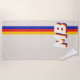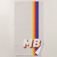 toalla de playa de rayas retro personalizado monograma. Crea tu propia toalla de playa personalizada con tu nombre inicial en la paleta de colores de verano de color amarillo rojo y azul.