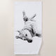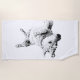 Este juguetón de perro se extiende con valentía a través de una toalla, mezclando el humor con el ocio. Una pieza perfecta para días de verano despreocupados.