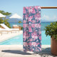 Impresionante toalla de playa de flores tropicales en una paleta clásica de color azul y rosa tropical. Perfecto como regalo para alguien especial a quien le encanta ir a la playa en un estilo tropical. Las obras de arte en esta playa de flores tropicales fueron creadas por el artista de la Costa Total, Jillee K. Copyright © Totally Coast All Rights Reservved 2023