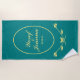 Crea una toalla de playa boda personalizada. Presenta un diseño rosa verde azulado junto con el nombre de la pareja boda y la fecha del boda. Sólo cambia el texto para adaptarlo a tus necesidades. Utilice la plantilla para personalizar.