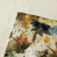 Las libélulas multicoloras magníficas revolotean en un fondo inspirado rústico. De mi impresión original del collograph.