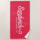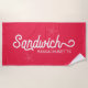 Esta toalla de playa muestra el texto Sandwich, Massachusetts con un tipo de letra náutica blanca con acentos de estrella. El fondo es de un color rosa brillante, pero puede cambiarse a cualquier color que desee. Perfecto para la decoración de playa, costera o náutica.