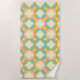 Seamless retro pattern with rounded squares in peach, teal, and cream hues, outlined in orange. Mid-century modern style, conveying a vintage, playful tone.