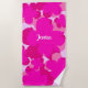 Serviette de plage motif Popflower rose sur fond rose pale avec votre prénom. Texte modifiable.