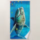 Experience an emotional underwater encounter with this detailed, stylized shark art print. The artwork showcases the ocean's apex predator gliding through sun-drenched deep blue light, contrasted by vibrant, colorful coral and tropical fish. This captivating scene masterfully blends power with the serene beauty of the marine environment, making it a compelling piece of ocean-themed decor. This truly unique design began with advanced AI generation and was then meticulously edited by a skilled artist to enhance its uniqueness, texture, and creative depth. This process ensures a distinctive, high-quality marine art print. Perfect for anyone who loves the ocean's mystery and power. Place your order today and embrace the joy of owning this exceptional piece!