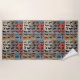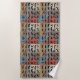 Esta toalla de playa tiene siluetas negras de avión, con un fondo abstracto y multicolor. Los aviones son un montaje de helicópteros vintage, moderno, civil y militar.