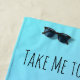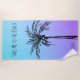 Disfrute de este divertido diseño tropical de toallas de playa con las palabras "Llévame a la playa", que incluyen una silueta negra de palmeras con cocos sobre un cielo azul y violeta. Personalízalo con tu nombre y frase.