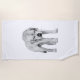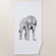 Esta toalla lleva una dramática representación en blanco y negro de un perro en posición firme. Una atrevida pieza gráfica para los amantes del sol y del agua que aprecian el arte moderno.