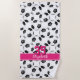 Esta toalla de playa personalizada para los chicas de fútbol presenta un patrón de pelotas de fútbol blancas y negras pequeñas arregladas en un patrón reflejado - su nombre y número de camiseta son personalizable - los colores de franjas de texto y nombre pueden ser personalizados - por katz_d_zynes