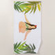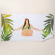 Toalla de playa con arte femenino mediador y follaje, color de fondo personalizado.