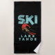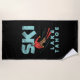 Gráfico que dice: Ski Lake Tahoe. El divertido diseño del esquí para las próximas vacaciones de esquí en las montañas en invierno.