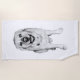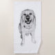 La sonrisa de este labrador, que se ve ondeada en negritas sombras en blanco y negro, se convierte en una radiante declaración al otro lado de una toalla. Un compañero perfecto para las aventuras soleadas, que añaden alegría a cada playa o salón junto a la piscina.