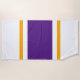 Este divertido diseño colorido presenta rayas flotantes amarillas doradas que resaltan una vibrante franja central vertical púrpura real contra un fondo blanco.