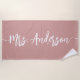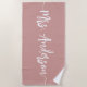 Celebra tu nuevo estado de novia con esta toalla de playa personalizada de color rosa polvo y rosa beige que presenta tu nuevo apellido en letra script blanca con florituras al inicio y al final. Es un regalo ideal para una boda, una fiesta de despedida o una luna de miel.