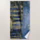 Casas de campo de paja en Cordeville. Vincent Willem van Gogh. Paisaje nocturno en tonos azul oscuro y amarillo. Hay un puente a través del río. En primer plano, un hombre y una mujer caminan por el terraplén. Las estrellas brillan en el cielo. Reproducción de obras famosas de imágenes artísticas de dominio público.