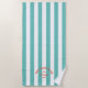 La toalla de playa del Surf Club es perfecta para la playa... con rayas de cabaña turquesa y escudo de club de surf personalizado. Personaliza con los detalles de tu viaje de surf... año y destino. Perfecto para un club, viaje familiar o de amigos o como recuerdo de un viaje pasado. Accesorios de juego disponibles en The Surf Club Cabana Stripe Collection.