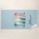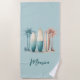 Surf retro de color agua y palmeras verdes, amarillas y naranjas. Fondo de color verde sabio. Personaliza y agrega tu nombre.
