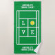 AMO la toalla de la pista de tenis regalo para entrenador o jugador. Una toalla de playa personalizada para él o ella. Haga su propia toalla de baño, playa o deporte. Regalo humorístico para tenista, entrenador, entrenador deportivo, profesor, instructor, niños, jubilado, amigos, familia, chica, niño, adolescente, colega jubilado, esposo o esposa, pareja boda, novia y novio, etc. Personalizable en diferentes colores. Ejemplo de color verde y blanco. Plantilla de tipografía audaz con el logo amarillo de la pelota de tenis. Añade tu propio nombre, frase graciosa o dicho.