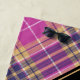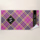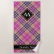 Tartán rosa, amarillo dorado y azul. Patrón sin foco. texto personalizado y monograma.